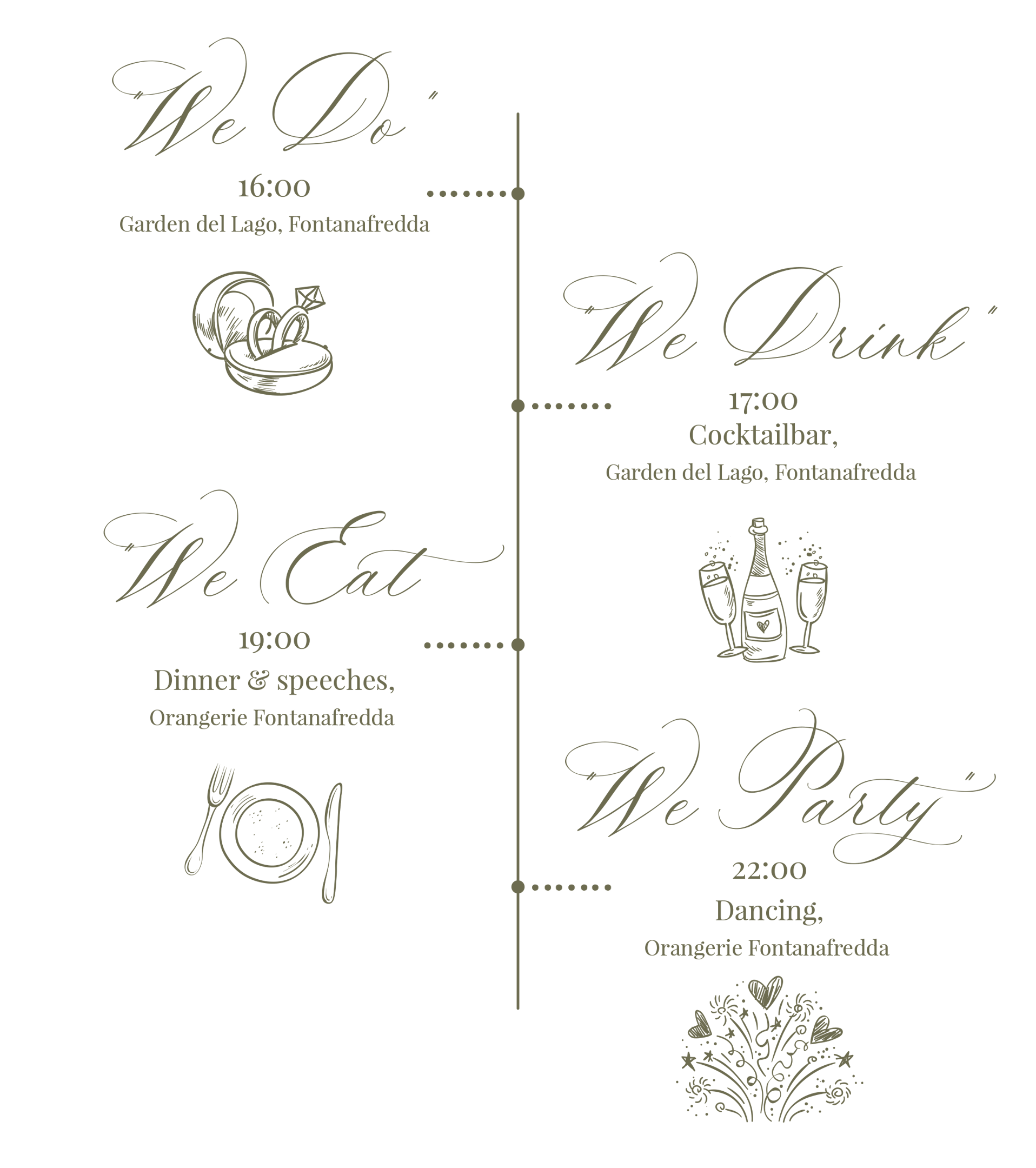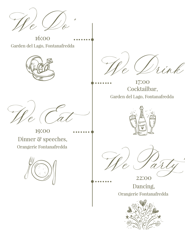 De wedding day vindt volledig plaats in Fontanafredda zelf, wij voorzien volgende transfers: